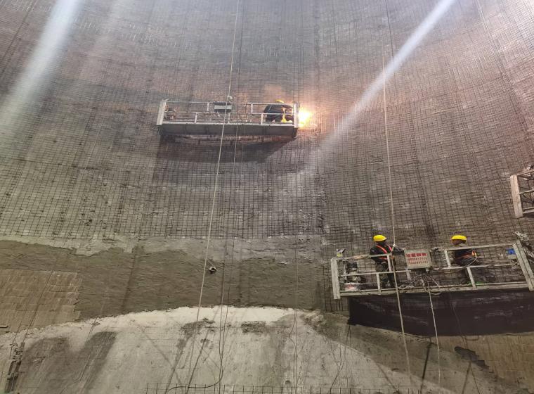 该项目位于山西省吕梁市交口镇贺家塔村,我公司主要负责1个15m直径混煤仓:恢复仓壁脱落钢筋,凿除残留微晶板,涂抹50mm厚高强抗磨料。采用公司产品